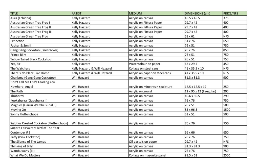 The first 10 artworks are by Kelly Hazzard; the next two are a collaboration between Kelly and Will Hazzard; the remainder are by Will Hazzard.